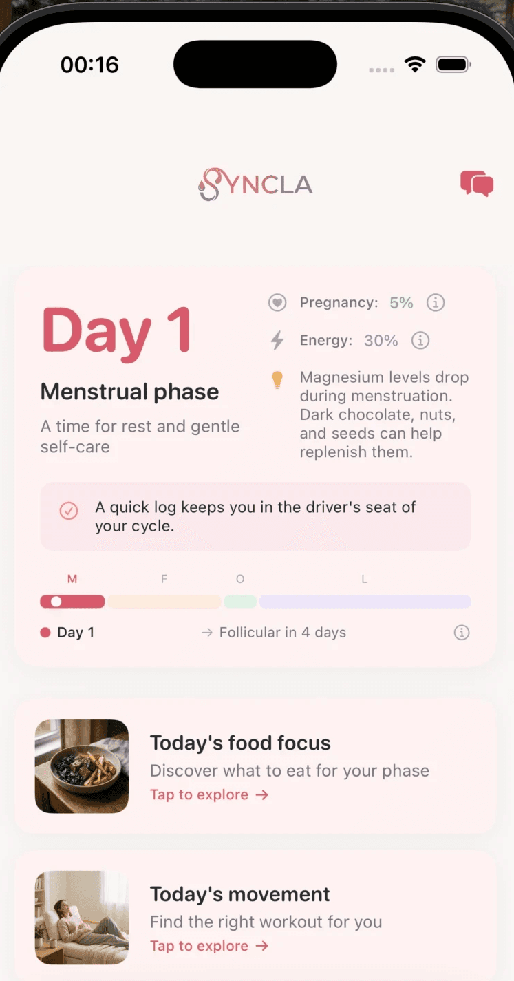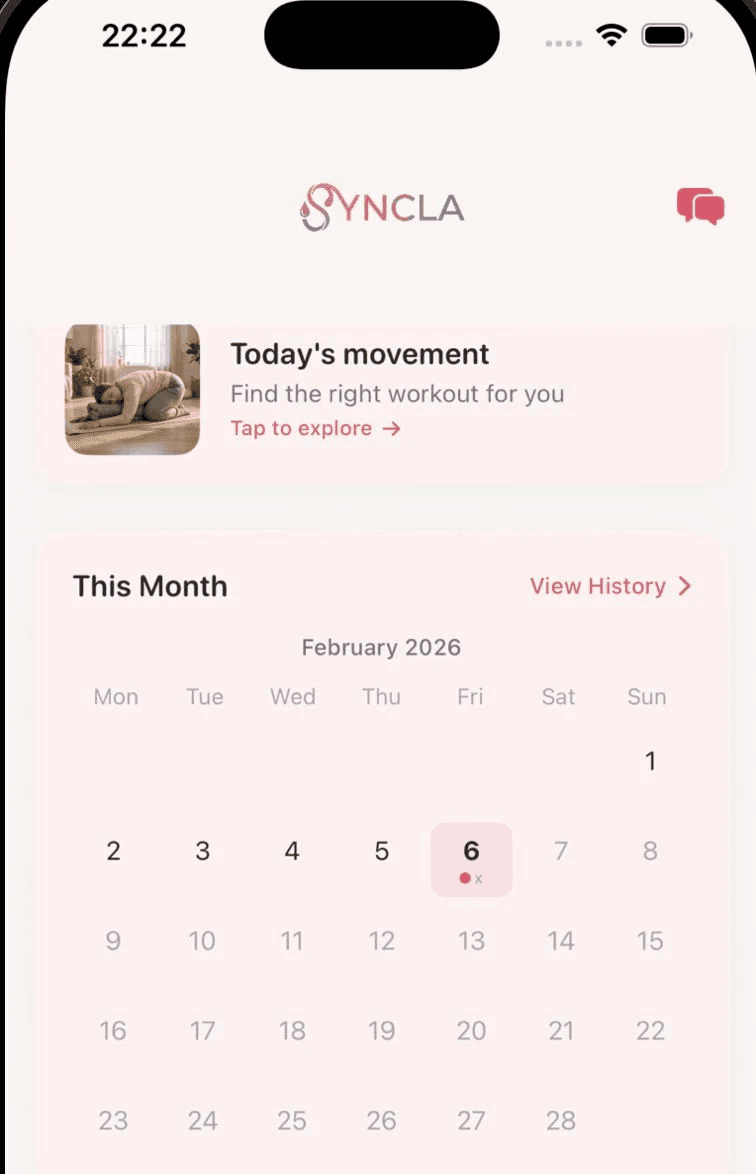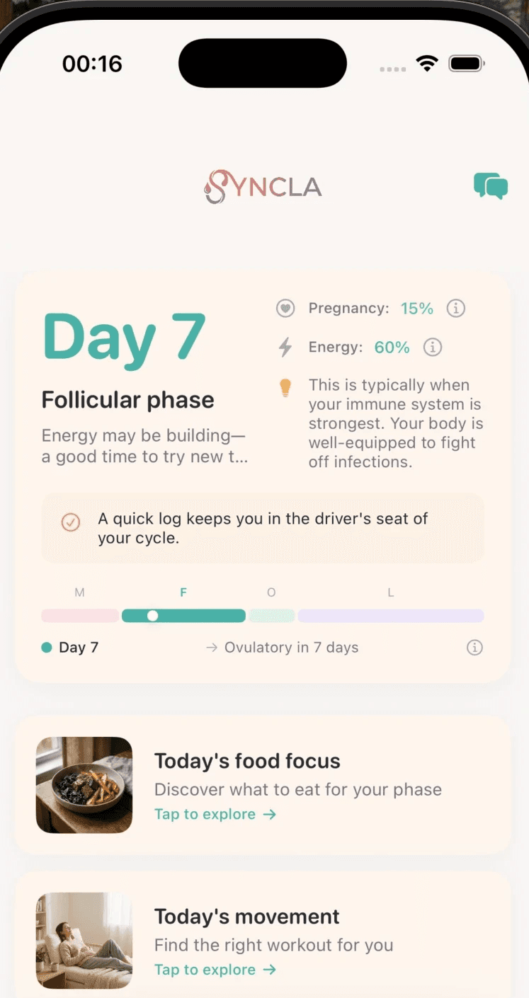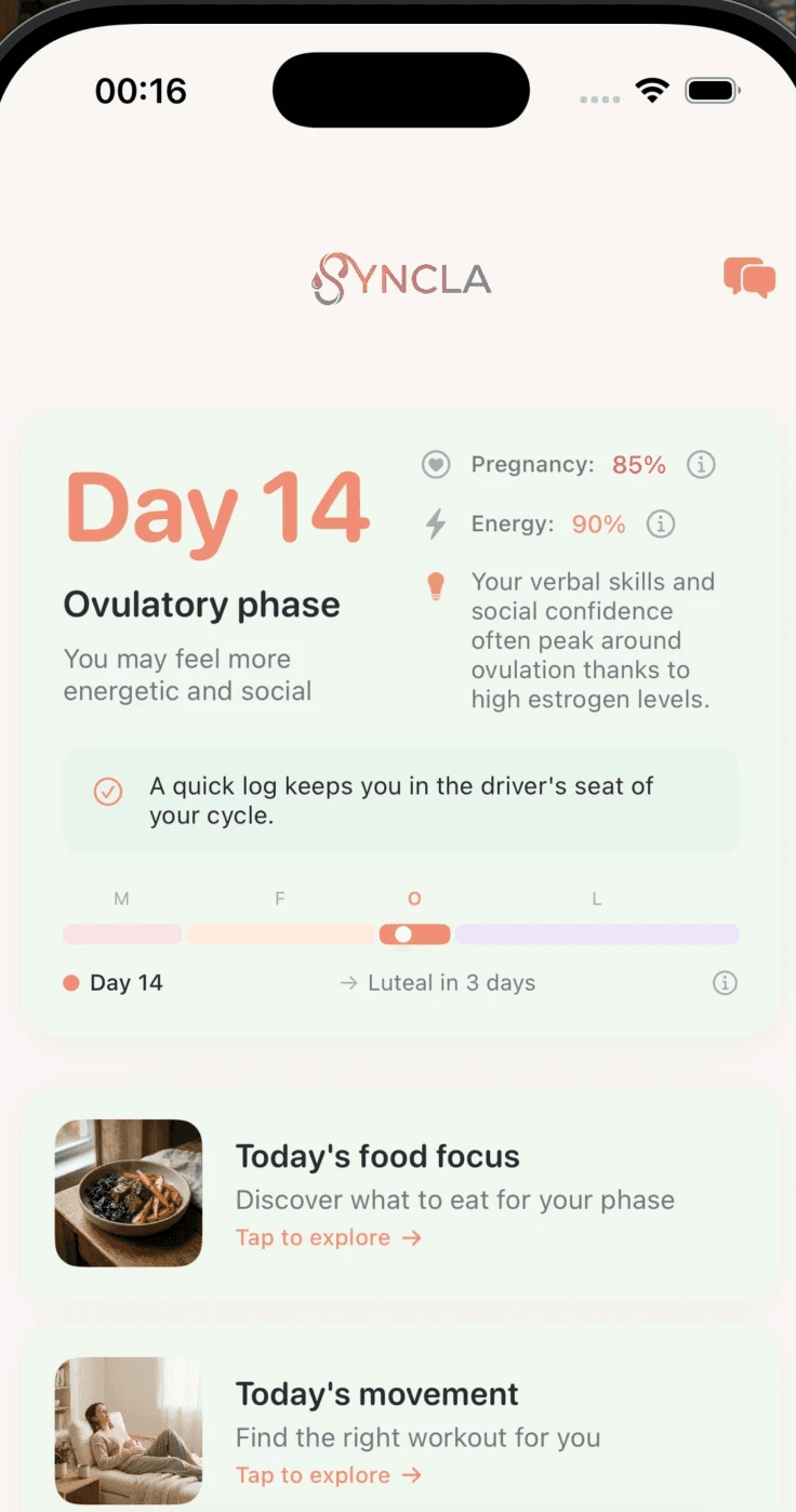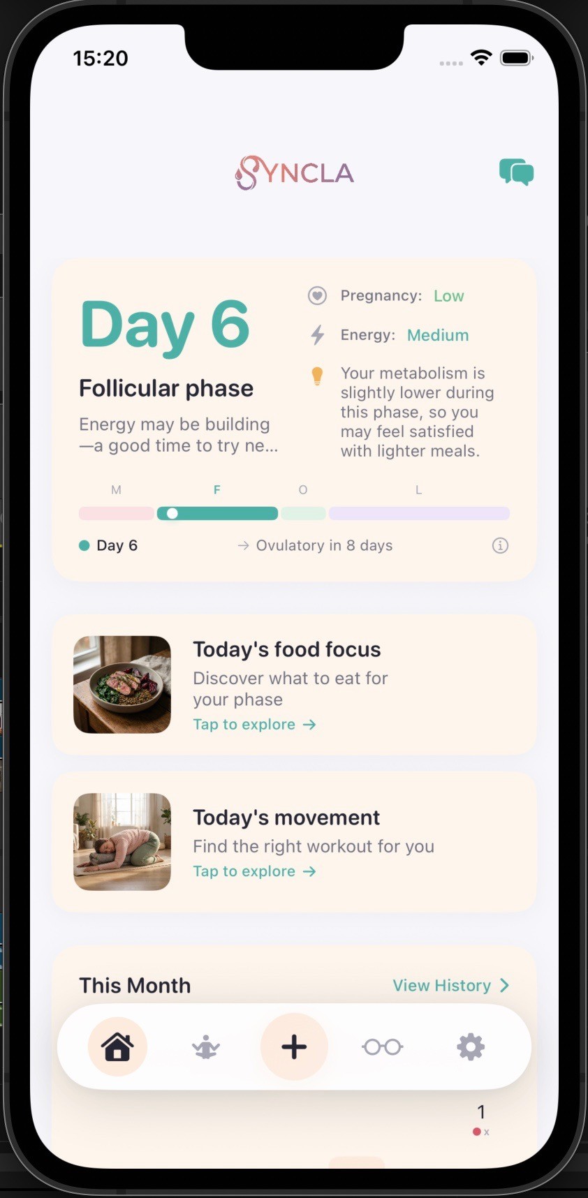 Syncla is a cycle-aware wellness platform using intelligent insights to personalise daily health guidance.