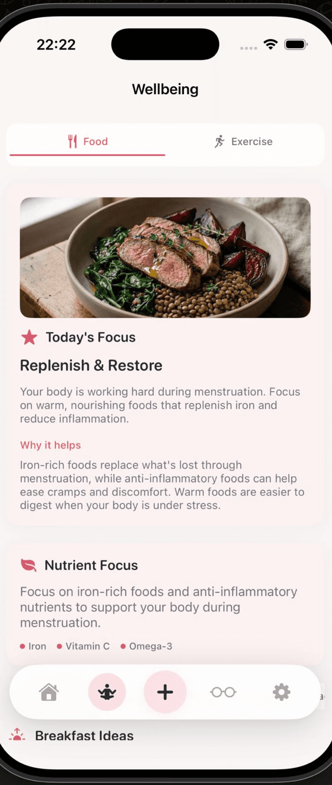 Track your cycle, personalise workouts and nutrition, and learn what your body needs every day.